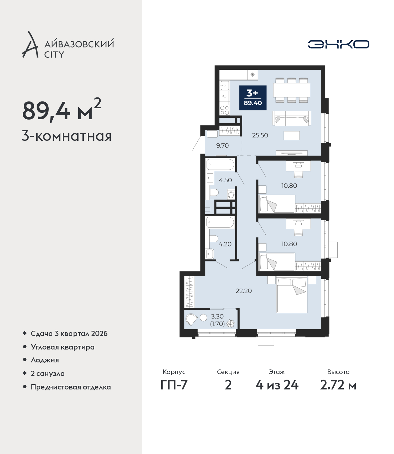 - Общая площадь 89.4 м²