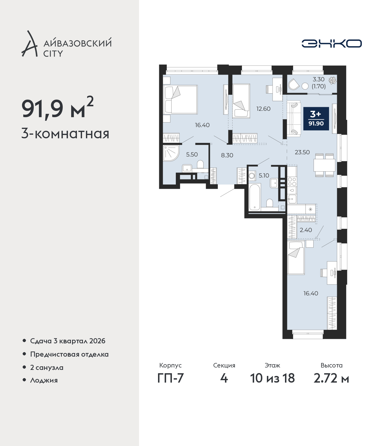 - Общая площадь 91.9 м²