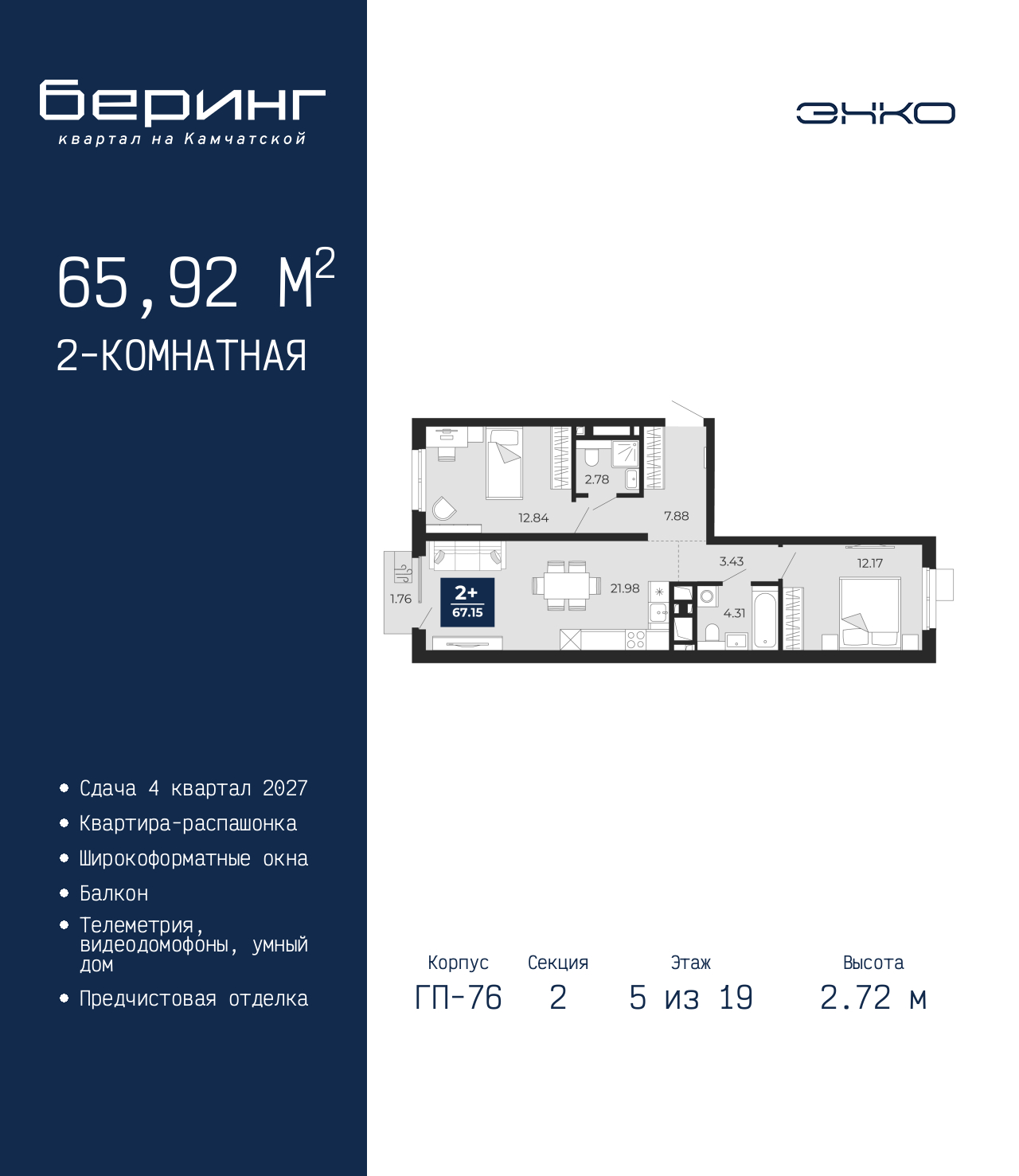 - Общая площадь 65.92 м²