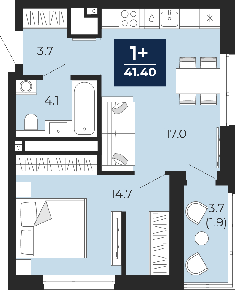 Продается однокомнатная квартира с предчистовой отделкой в ЖК "Мириады" на 7 этаже. Общая площадь: 41.4 кв.м., жилая: 14.7 кв.м., площадь просторной кухни-столовой: 17 кв.м. Угловая квартира, идеально подойдет любителям тишины и панорамных видов. В квартире одна лоджия, один совмещенный санузел. Высота потолков 2.7 м. Квартира находится в корпусе ГП-72.101. Дом монолитный, одноподъездный, высотой 25 этажей. На этаже 8 квартир. В подъезде 2 пассажирских и 1 грузовой лифт. Окончание строительства - 1 квартал 2026 года. Оформление сделки по договору долевого участия. Вселенная бесконечных историй. Ранее невиданный Тюмени масштаб: территория 240 гектаров и 1 650 000 м² застройки. Мириады – это город масштабных перемен и больших возможностей. Город зеленых рощ и зеркальных озер. Город для работы, учебы и развлечений. Город для детей и их родителей. Город для всех и каждого. Проект расположен в районе Мыс рядом с ТРЦ «Тюмень Сити Молл» в границах улицы Тимофея Чаркова, Тобольского тракта и объездной дороги. Срок полного освоения территории - до 2034 года. (AQID02522613)