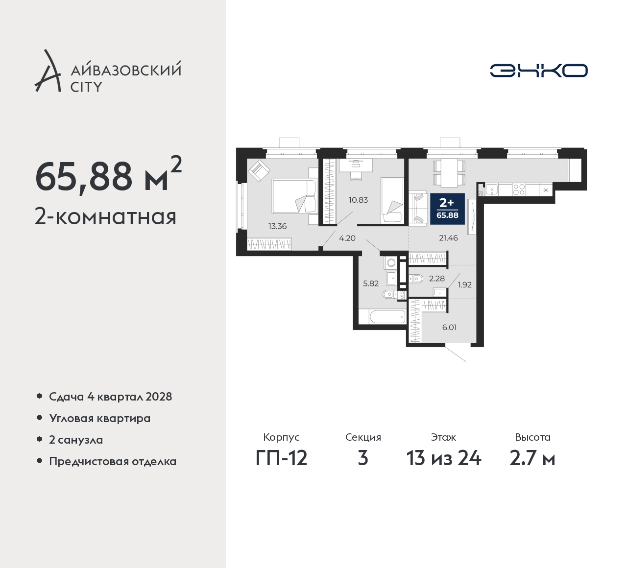 - Общая площадь 65.88 м²