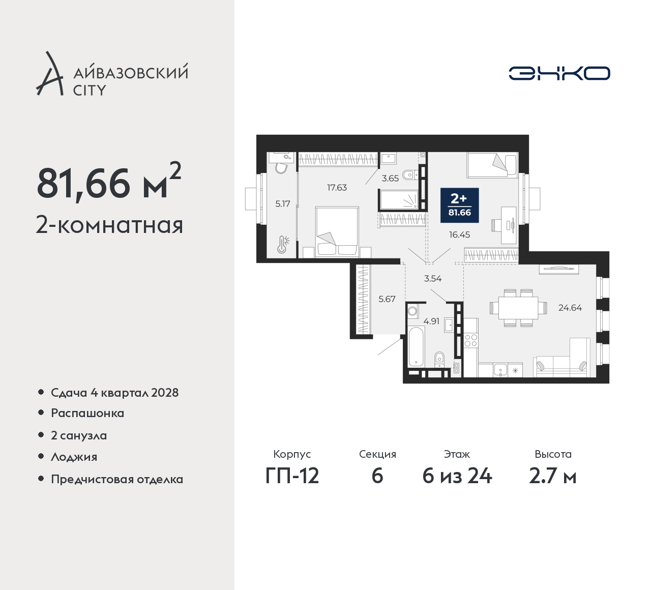- Общая площадь 81.66 м²
