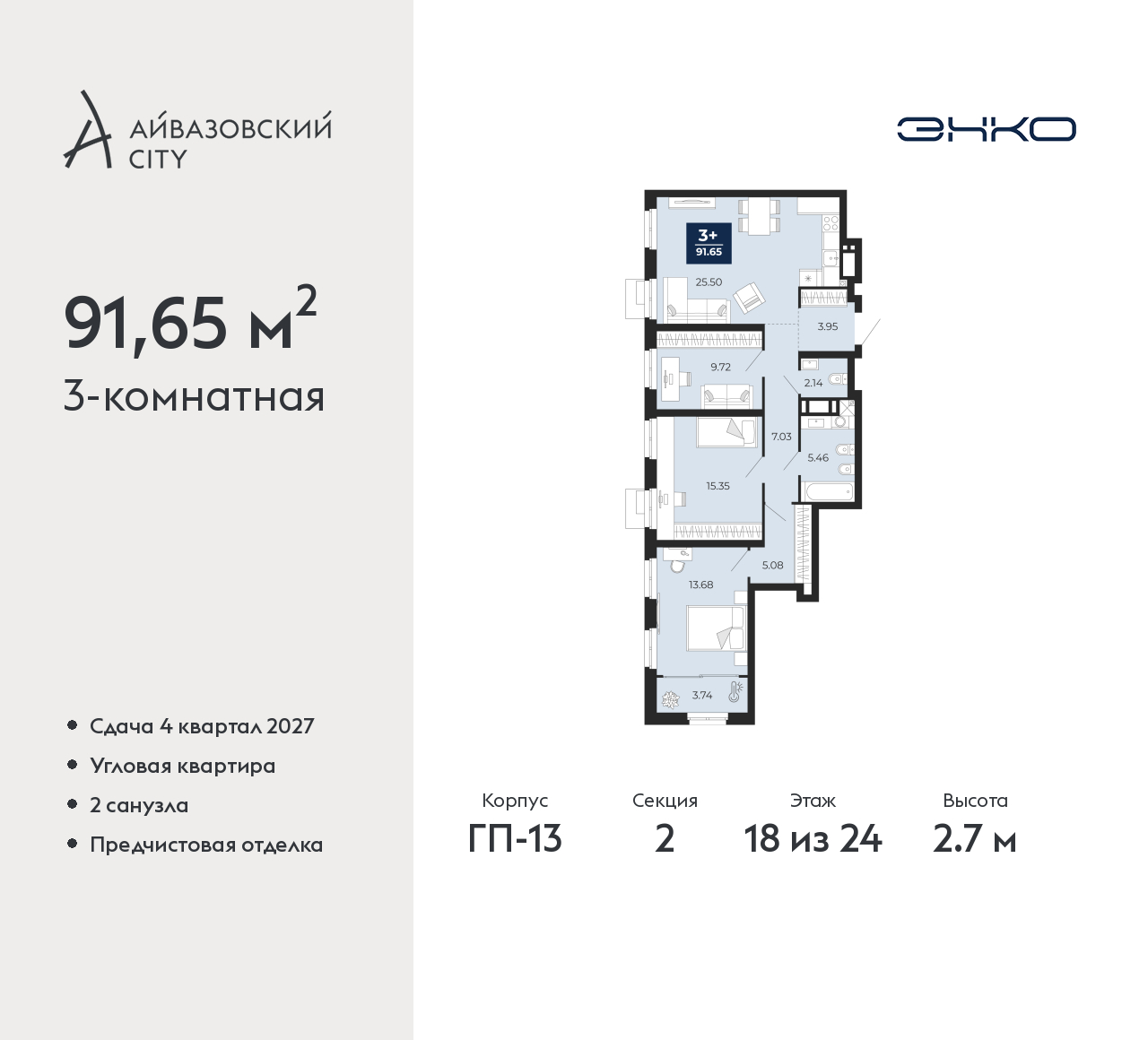 Просторная трехкомнатная квартира с предчистовой отделкой в ЖК "Айвазовский City" на 18 этаже. Общая площадь: 91.65 кв.м., жилая: 38.75 кв.м., площадь просторной кухни-столовой: 25.5 кв.м. Угловая квартира, идеально подойдет любителям тишины и панорамных видов. В квартире один совмещенный и один раздельный санузел. Высота потолков 2.7 м. Дом монолитный, многоподъездный, высотой 24 этажа. Квартира находится во 2-й секции в корпусе ГП-13. На этаже 6 квартир. В подъезде 1 пассажирский и 1 грузовой лифт. Окончание строительства - 4 квартал 2027 года. Оформление сделки по договору долевого участия. Новый жилой район располагается в живописном месте на берегу Туры в центральной части города. Принципиально новое пространство для жизни в центре современного города для тех, чьи мечты сбываются, кто нацелен на постоянный рост, перемены к лучшему для себя и своих близких. Каждая деталь Айвазовский City вдохновляет и заряжает на новые свершения: авторская архитектура, сбалансированная продуманная инфраструктура, дизайнерские дворы со спортивными и детскими площадками, парковые зоны с фонтанами, водный канал, украшающий центральный прогулочный маршрут района и многое другое. В 2019 года проект стал лауреатом престижной премии Urban Awards 2019 в номинации «Лучший строящийся региональный жилой комплекс бизнес-класса». Главная особенность Айвазовский City - соседство разных архитектурных школ в рамках одного дома. Изысканная классика, выразительная эклектика и оригинальный модерн - жить в одном из таких домов настоящий повод для гордости. Айвазовский City это идеальное сочетание комфорта, технологий и развитой инфраструктуры. Вход в подъезд возможен с улицы и со двора. Отправляясь на работу или за покупками, жители могут выйти с внешней стороны дома, а для прогулки с ребенком – со стороны двора. Экологически чистые материалы и энергосберегающие технологии, качественное освещение общественных зон, видеонаблюдение по всей территории жилого района (в том числе в подъездах, лифтах и в подземном паркинге), закрытые дворы с доступом только для жителей Айвазовский City. Часть домов в Айвазовский City будут оснащены подземным паркингом. Востребованный в нашем климатическом поясе формат хранения автомобилей защитит собственность владельца в любое время года. Аккредитация в банках: ОАО «Альфа-Банк», ПАО Банк «ВТБ», ПАО «Газпромбанк», «Сбербанк России», ПАО «Совкомбанк» и других. (AQID02525762)