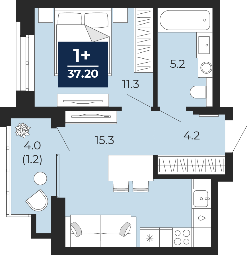 Продается 1-комн. квартира с предчистовой отделкой в ЖК "Мириады" на 5 этаже. Общая площадь: 37.2 кв.м., жилая: 11.3 кв.м., площадь просторной кухни-столовой: 15.3 кв.м. Все окна выходят на одну сторону. В квартире одна лоджия, один совмещенный санузел. Высота потолков 2.7 м. Дом монолитный, трехподъездный, переменной этажности, от 14 до 16 этажей. Квартира находится во 2-й секции высотой 16 этажей в корпусе ГП-72.103. На этаже 6 квартир. В подъезде 1 пассажирский и 1 грузовой лифт. Окончание строительства - 1 квартал 2026 года. Оформление сделки по договору долевого участия. Вселенная бесконечных историй. Ранее невиданный Тюмени масштаб: территория 240 гектаров и 1 650 000 м² застройки. Мириады – это город масштабных перемен и больших возможностей. Город зеленых рощ и зеркальных озер. Город для работы, учебы и развлечений. Город для детей и их родителей. Город для всех и каждого. Проект расположен в районе Мыс рядом с ТРЦ «Тюмень Сити Молл» в границах улицы Тимофея Чаркова, Тобольского тракта и объездной дороги. Срок полного освоения территории - до 2034 года. (AQID02536517)